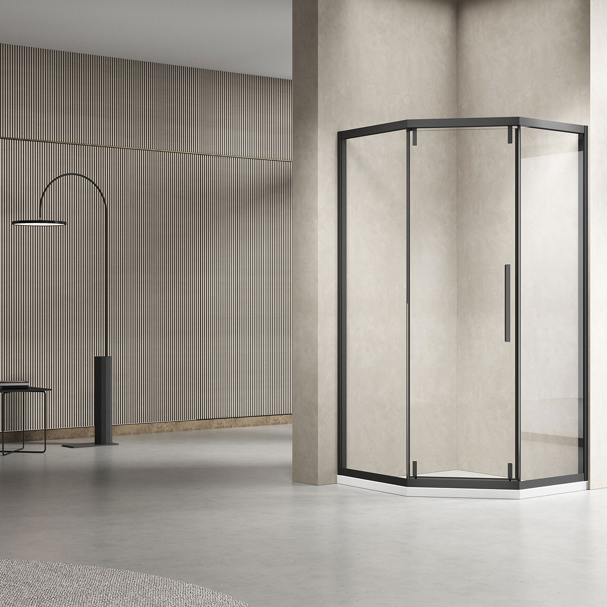 Душевой угол распашной пятиугольный 900x900x1900 профиль Черный матовый стекло Прозрачное OP10B-9090-01-C9 Veconi